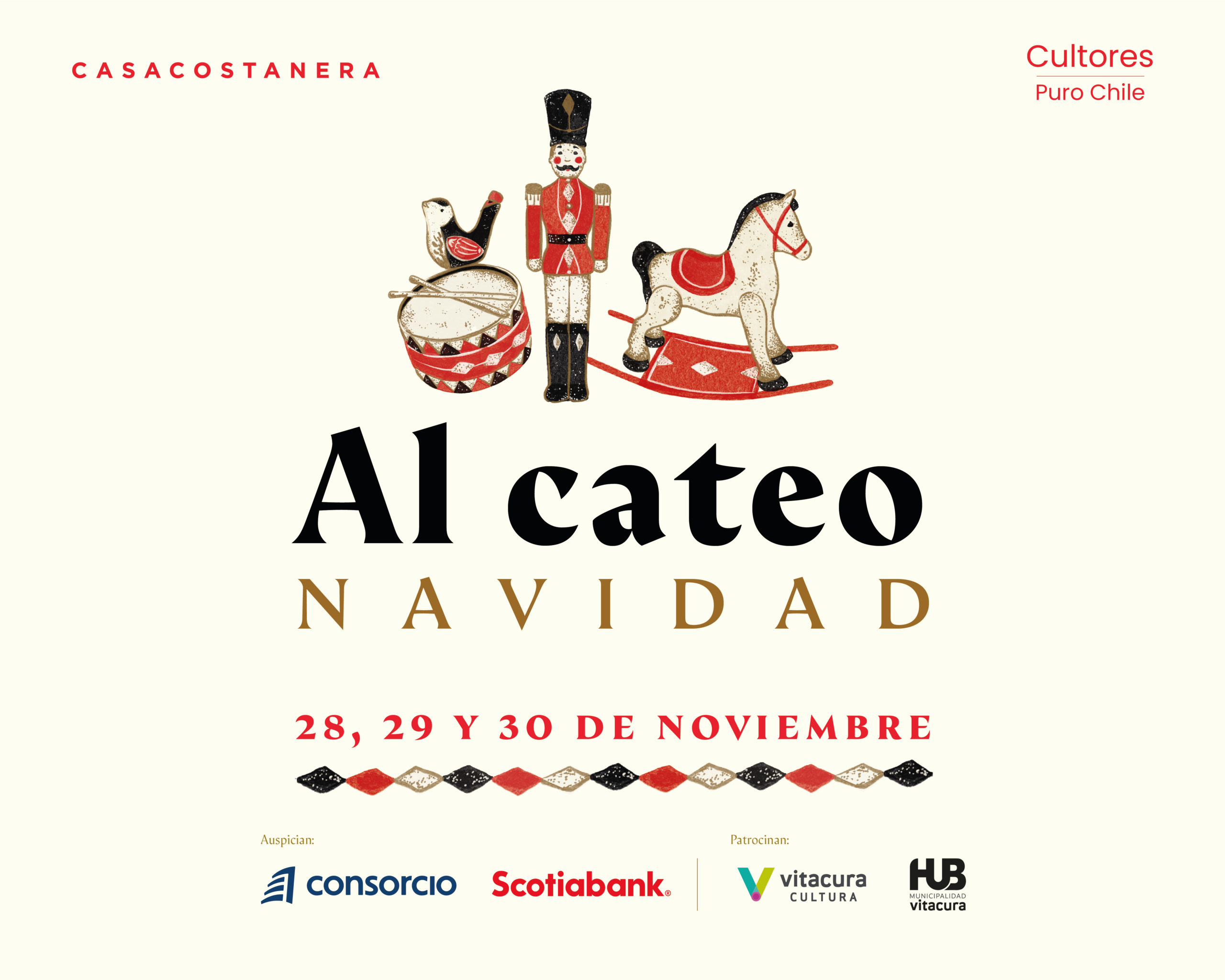 Te esperamos este 28, 29 y 30 de noviembre en Casacostanera con más de 90 expositores que dominan oficios únicos: tejidos, cerámicas, arte, libros, juguetes y piezas que cuentan historias. Un espacio para encontrar ese regalo con sentido, hecho a mano en Chile.